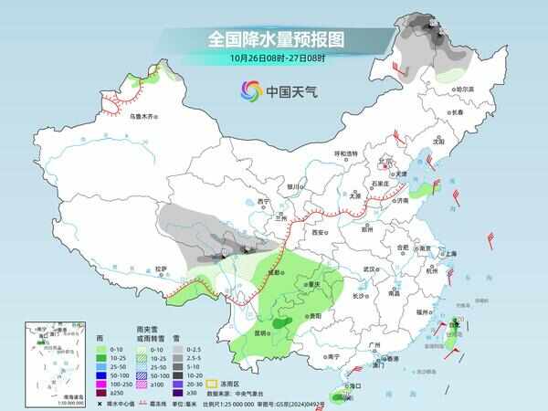 央视新闻:据中国天气网报道,今明两天(10月26日-27日),随着冷空气东移、南移,内蒙古东北部、黑龙江等地区将有大雪。华北、东北地区将出现明显降温。大部分地区气温将降至较低水平,早晚寒意较为明显。今明两天西南地区降雨持续,黑龙江、内蒙古等地有大雪。昨天,我国青藏高原东部地区持续降雪。与此同时,内蒙古东北部、黑龙江等地也出现明显降雪。降雨量增加黄淮、建淮等地区。监测显示,青海东部和南部、西藏东部、四川高原北部、甘肃中部、内蒙古东北部、黑龙江西部等地有小到中雪或雨夹雪,局地大雪或暴雪。今明两天,重庆、四川、贵州、云南等地区将持续阴雨天气。青海、西藏雨雪可能逐渐南移,内蒙古东北部、黑龙江等地大雪将逐渐东移。中央气象台预计,今天,内蒙古东北部、黑龙江西北部、青海南部、西藏东北部、川西高原北部等地有小到中雪或雨夹雪。其中,黑龙江西北部、青海东南部、西藏东北部等地部分地区有大到大雪。有小到中雨西藏东南部、四川大部、重庆大部、湖北西南部、湖南西北部、贵州中北部、云南中东部、海南岛大部、台湾岛大部,其中海南岛东南部局地大到暴雨。明天,新疆阿勒泰山区、西藏南部、黑龙江大部、川西高原北部等地有小到中雪或雨夹雪,局地大雪。气象部门提醒,今明两天,青藏高原东部、内蒙古东北部、黑龙江西北部等地有降雪。需关注对农业设施、畜牧业、交通安全的影响。市民外出时应注意滑倒,注意交通安全。华北、东北地区气温明显下降许多地方的早晨和晚上明显寒冷。昨天,我国西南部黄淮、建淮地区气温下降,降雨增多。 14:00,湖南、湖北部分地区气温下降4~8℃。贵州、湖北、湖南西部和北部等地区气温降至12℃左右,湿冷感突出。与此同时,新一波莫冷空气开始影响我国北方,内蒙古等地区率先降温。今明两天,北方冷空气将继续东移、南移,华北、东北、内蒙古大部将出现明显降温。多地气温降幅可达4至8℃,局部气温下降10℃以上,大部分地方气温将低于常年同期。 27日,太原将出现立秋后第一个0℃,石家庄最低气温将降至3℃,再创新低。大面积地区早晚会感到寒冷。另外,随着今日西北地区东南部、江汉、黄淮、江淮等地降雨结束,部分地方气温将快速反弹,最高气温升高4至8℃,多地气温将重回20℃左右。如西安,昨日14:00气温为13.3℃,今日将升至17℃,寒冷已 松了口气。中国天气网提醒,今明两天北方多地受冷空气影响,气温明显下降。华北、东北地区大部地区气温将回归低温,多地早晚寒冷。建议公众注意保暖防寒,及时添衣,谨防感冒。